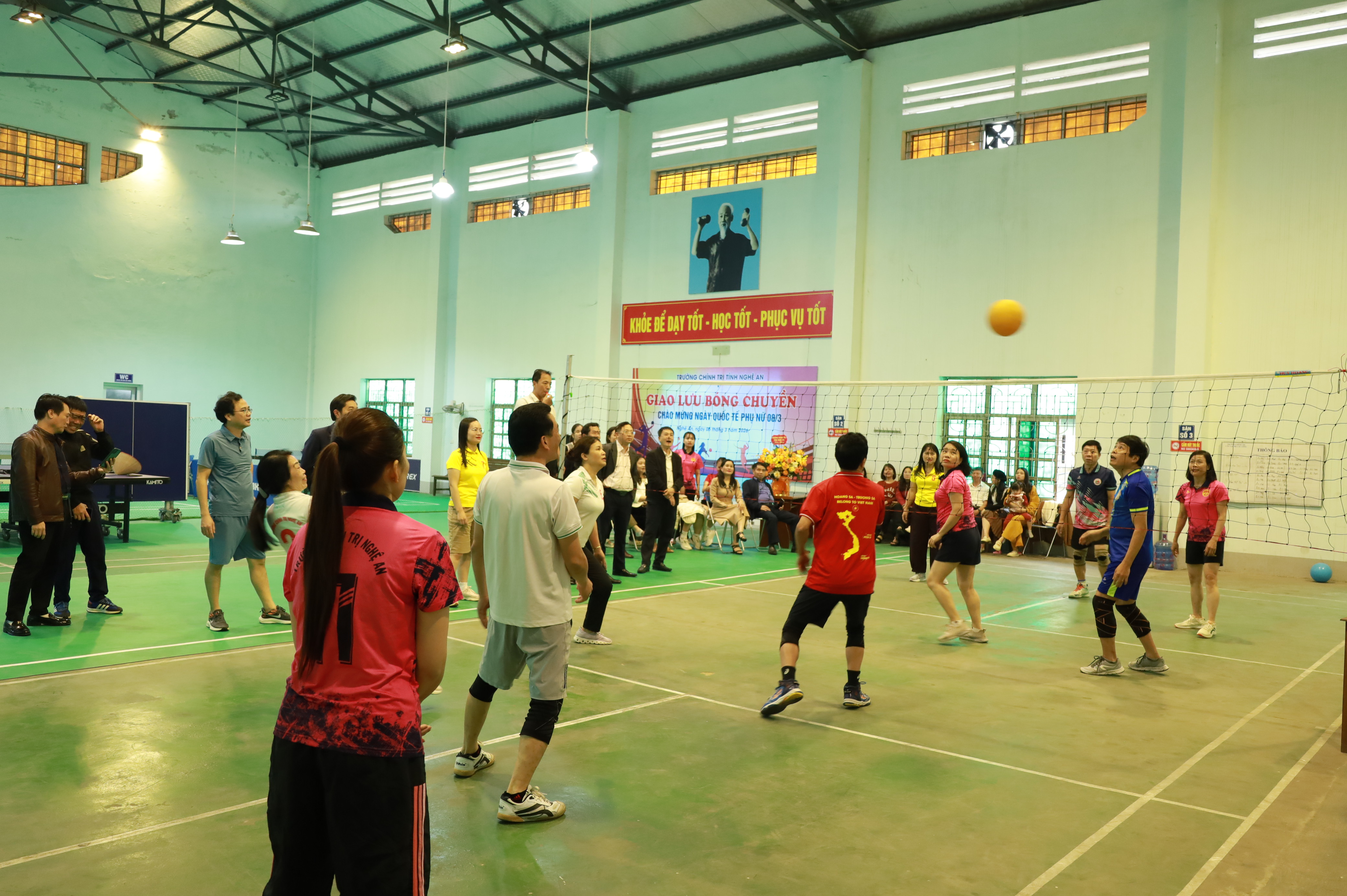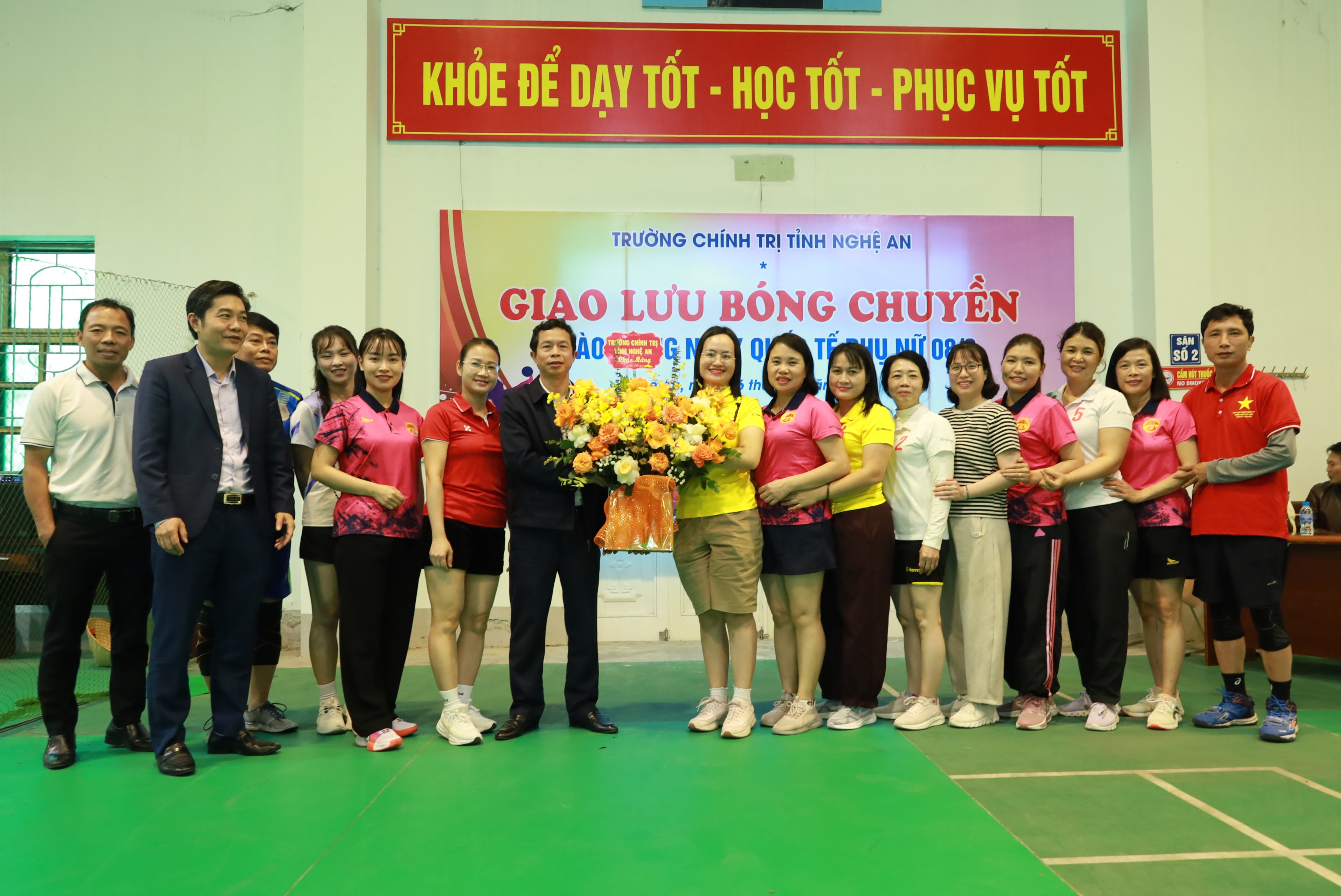 Nhân dịp kỷ niệm Ngày Quốc tế Phụ nữ 8/3, Trường Chính trị tỉnh Nghệ An tổ chức hoạt động giao lưu bóng chuyền hơi nữ với sự tham gia của đông đảo cán bộ, viên chức, người lao động trong toàn trường. Đây là hoạt động thiết thực nhằm tạo không khí thi đua sôi nổi, tăng cường giao lưu, gắn kết tập thể, đồng thời góp phần nâng cao đời sống tinh thần cho đội ngũ cán bộ, viên chức nhà trường.