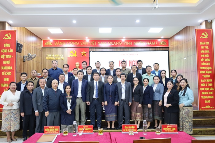 Về phía tỉnh Nghệ An có đồng chí Hồ Sỹ Nguyệt, Phó Trưởng Ban Tổ chức Tỉnh ủy; đồng chí Giang Công Huy, Phó Trưởng phòng Hợp tác quốc tế – Sở Ngoại vụ. Về phía Trường Chính trị tỉnh có đồng chí Vương Quang Minh, Tỉnh ủy viên, Bí thư Đảng ủy, Hiệu trưởng nhà trường cùng lãnh đạo các khoa, phòng tham dự.
