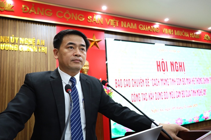 Hội nghị Báo cáo chuyên đề về "Cuộc cách mạng tinh gọn bộ máy hệ thống chính trị, công tác xây dựng đội ngũ cán bộ của tỉnh Nghệ An"