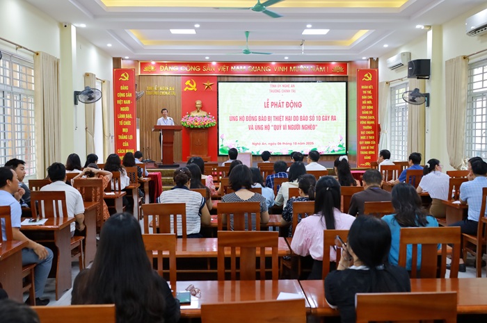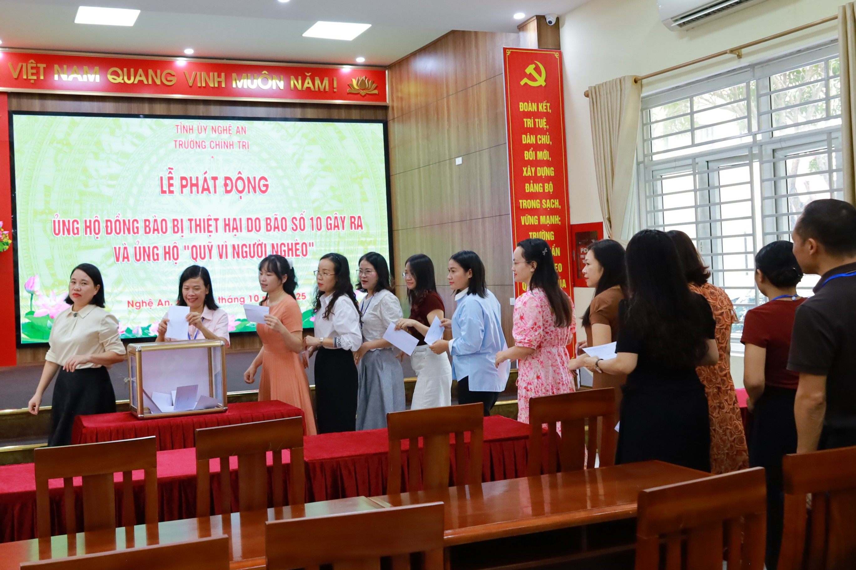 Trường Chính trị tỉnh Nghệ An phát động ủng hộ đồng bào bị thiệt hại nặng do cơn bão số 10 và ủng hộ Quỹ “Vì người nghèo” năm 2025