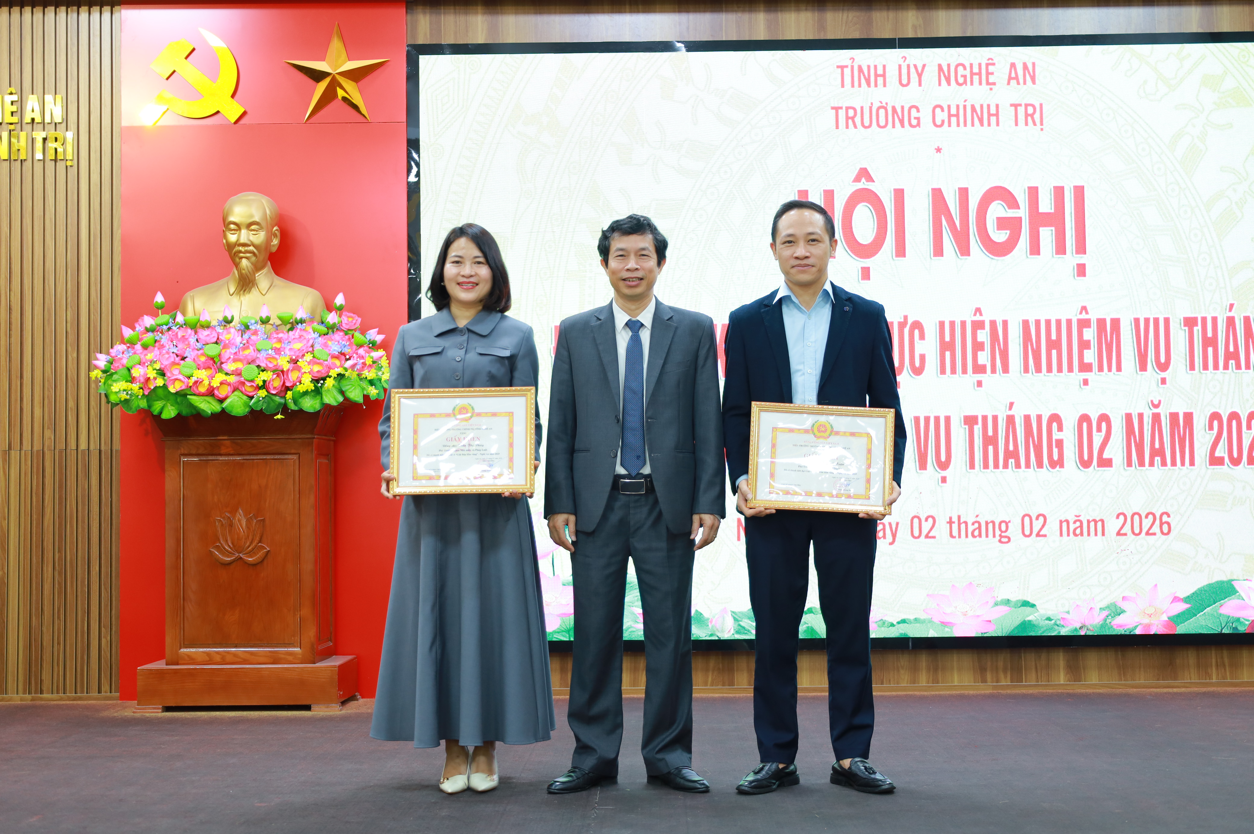 Ngày 02/02/2026, Hiệu trưởng Trường Chính trị tỉnh Nghệ An đã ký Quyết định thưởng đột xuất cho các cá nhân có thành tích xuất sắc trong tham gia Giải "Búa liềm vàng” – Nghệ An năm 2025", nhằm kịp thời ghi nhận, biểu dương những đóng góp tiêu biểu trong công tác nghiên cứu, sáng tác các tác phẩm báo chí về xây dựng Đảng.