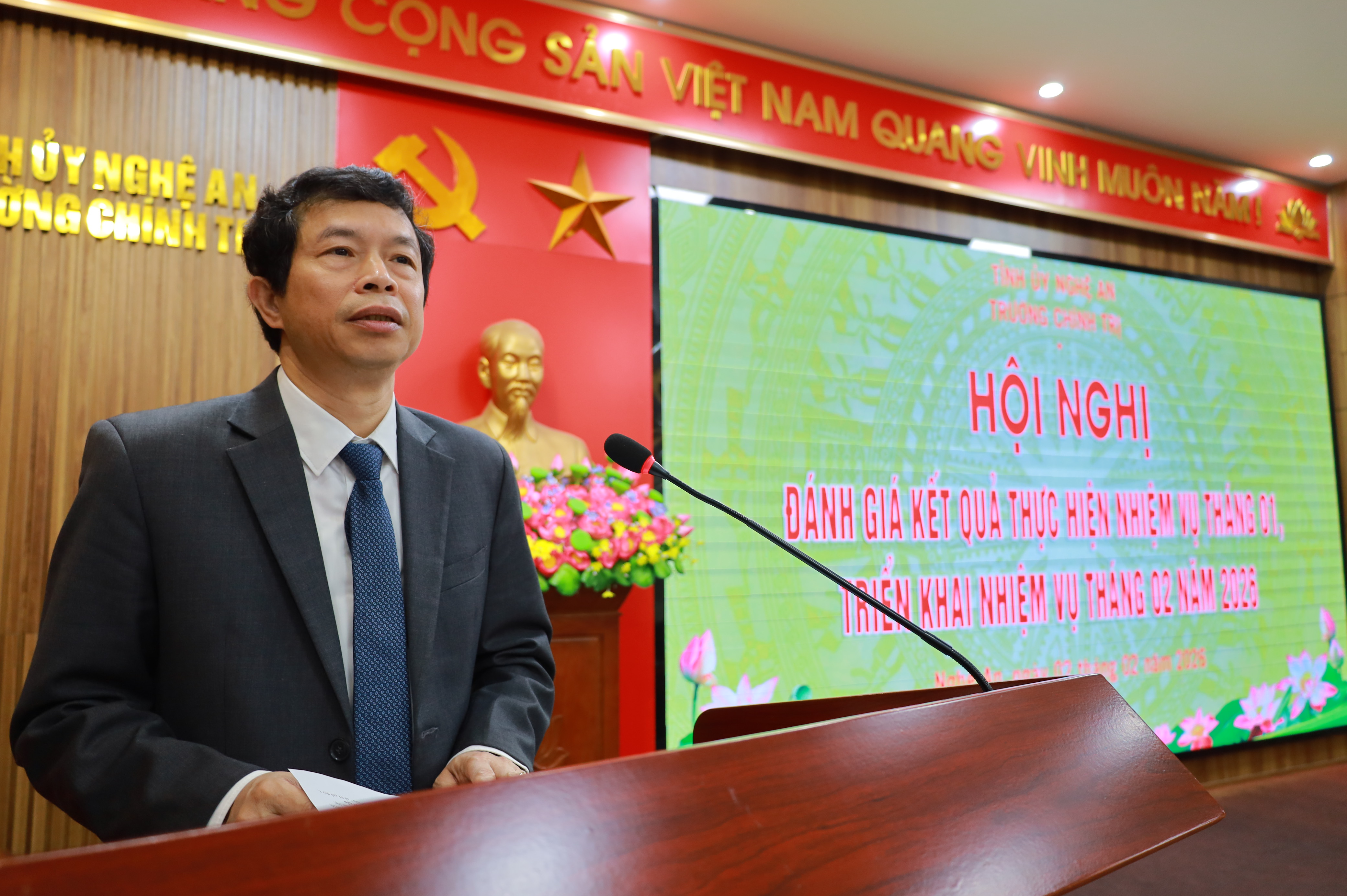 Phát biểu tại buổi trao thưởng, đồng chí Vương Quang Minh, Hiệu trưởng Trường Chính trị tỉnh Nghệ An, chúc mừng các cá nhân được khen thưởng; đồng thời khẳng định, kết quả đạt được tại Giải "Búa liềm vàng - Nghệ An năm 2025" là niềm tự hào của Nhà trường, góp phần khẳng định vai trò, vị thế của Trường Chính trị tỉnh trong công tác nghiên cứu lý luận, tổng kết thực tiễn và tuyên truyền về xây dựng Đảng.